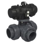 Ovaj trokraki kuglasti ventil sa L-portom opremljen je snažnim pneumatskim aktuatorom dvosmernog dejstva (Double Effect), pružajući beskompromisnu preciznost u industrijskim sistemima. Dizajniran je za sisteme koji zahtevaju trajne spojeve putem lepljenja (solvent cement), osiguravajući maksimalnu hermetičnost i dug radni vek.